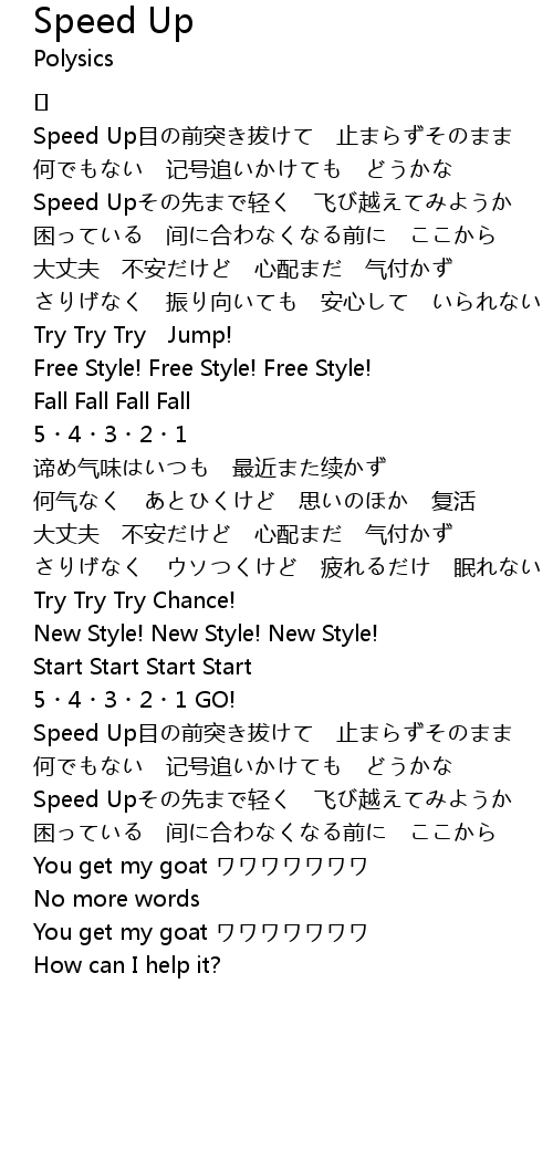 | Speed Up目の前突き拔けて 止まらずそのまま | |
