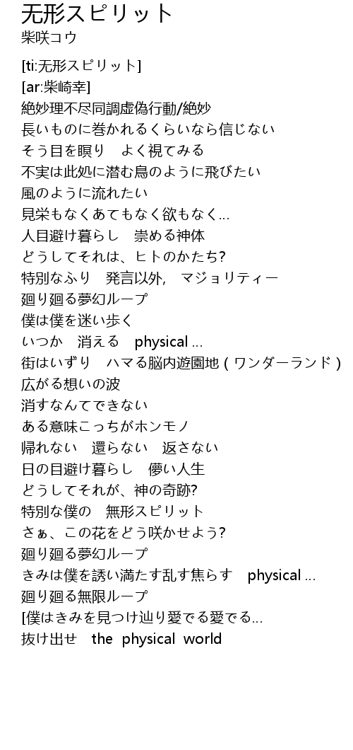 | [03:14.16] | きみは僕を誘い満たす乱す焦らす physical … |