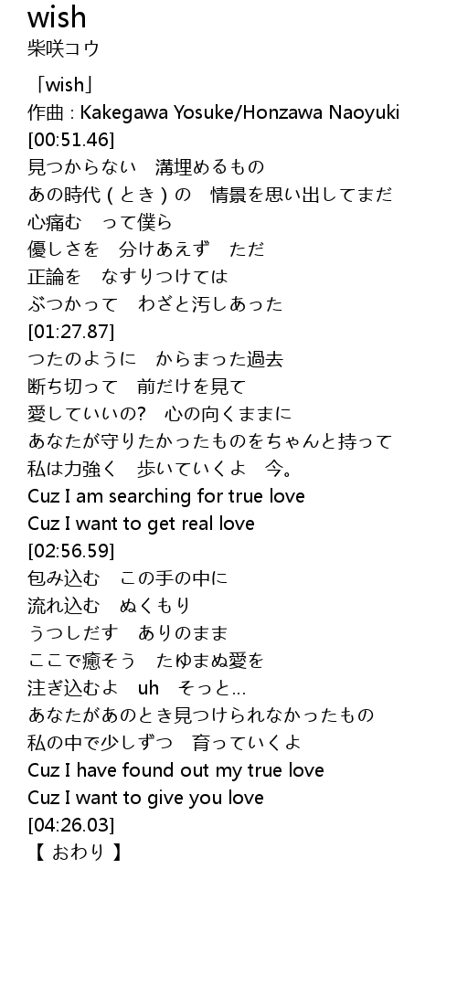 | [00:11.46] | 「wish」 |