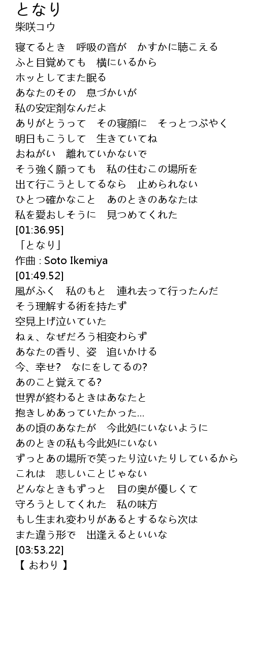 | [01:38.52] | 「となり」 |