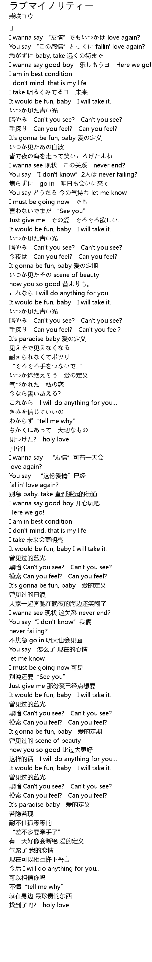 | 歌曲 | ラブマイノリティー |