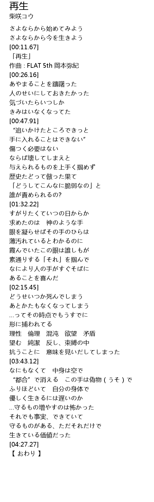 | [03:49.41] | “都合”で消える この手は偽物(うそ)で |
