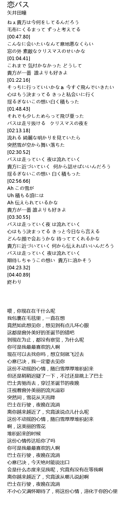 | [02:05.79] | バスは走り抜ける クリスマスの夜を |