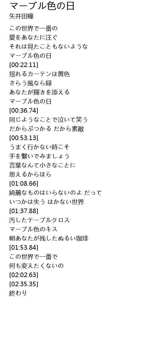 | [00:33.51] | マーブル色の日 |