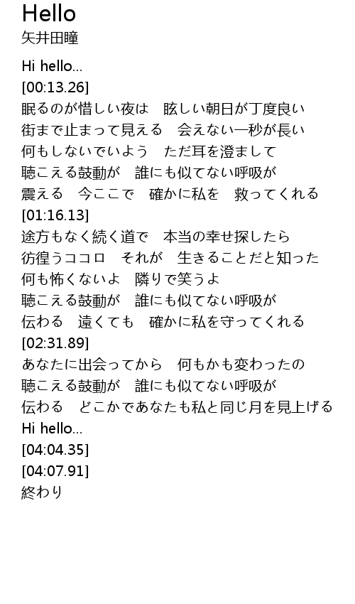 | [03:08.72] | 聴こえる鼓動が 誰にも似てない呼吸が |