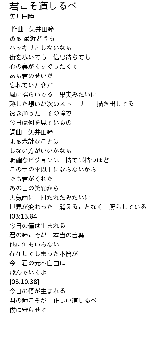 | [01:10.45] | 詞曲:矢井田瞳 |