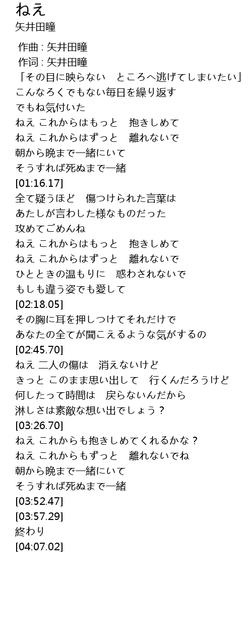 | [00:01.00] | 作词 : 矢井田瞳 |