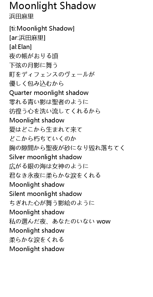 | [04:01.51] | Moonlight shadow |