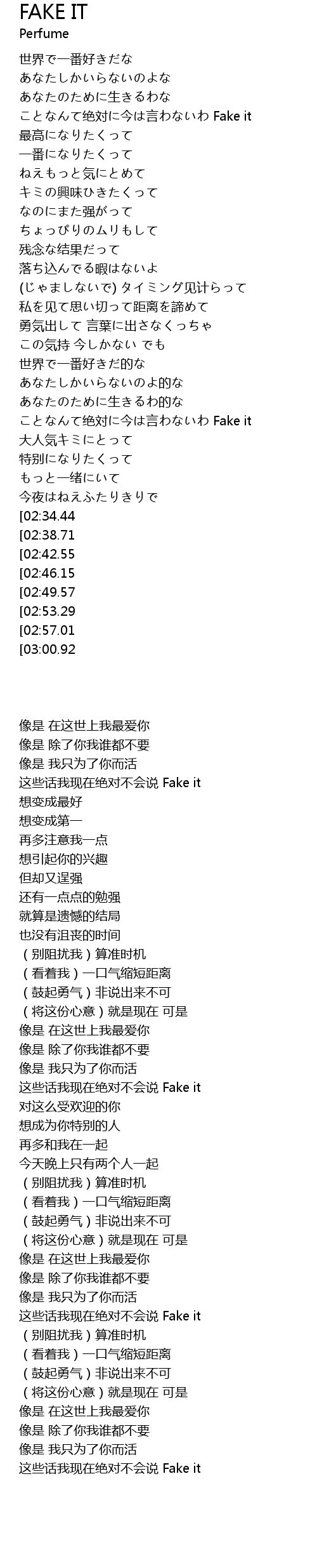 | [03:33.71][03:00.92] | jué duì jīn yán Fake it |
