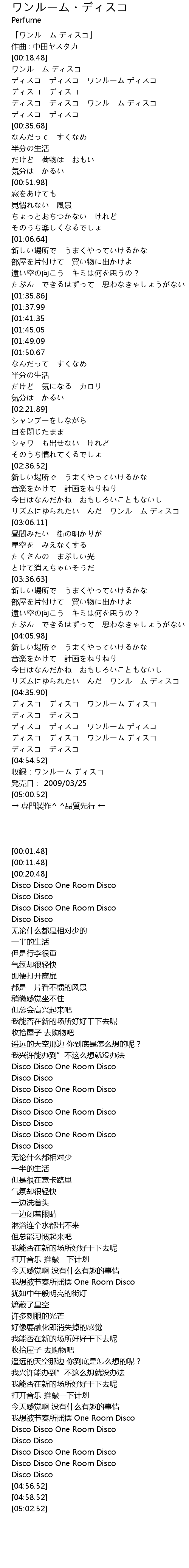 | [04:48.86] | ディスコ ディスコ ワンルーム ディスコ |
