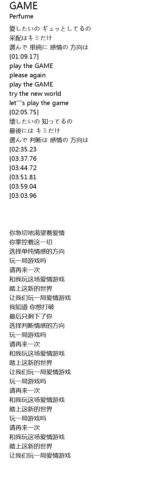 | [04:20.35][03:51.81][02:49.73] | play the GAME |