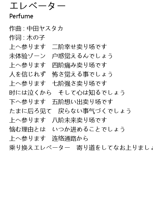 | 歌曲 | エレベーター |