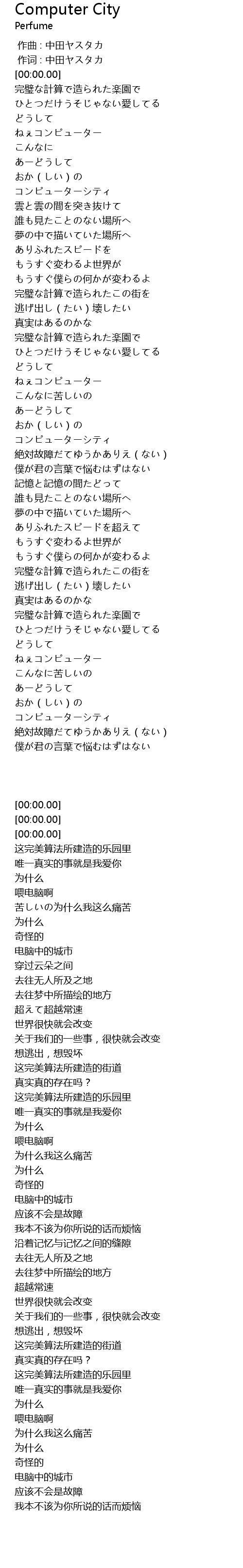 | [00:00.00] | 作词 : 中田ヤスタカ |