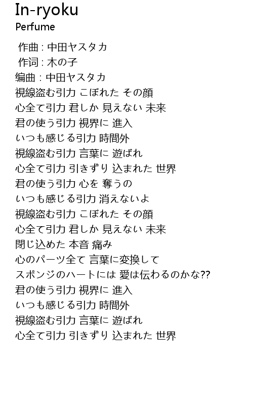 | 歌曲 | In-ryoku |