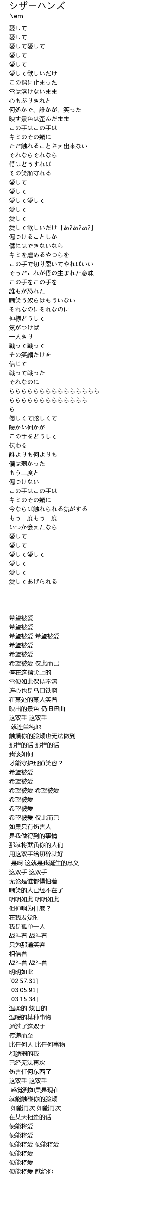 | [03:55.73] | 愛して愛して |