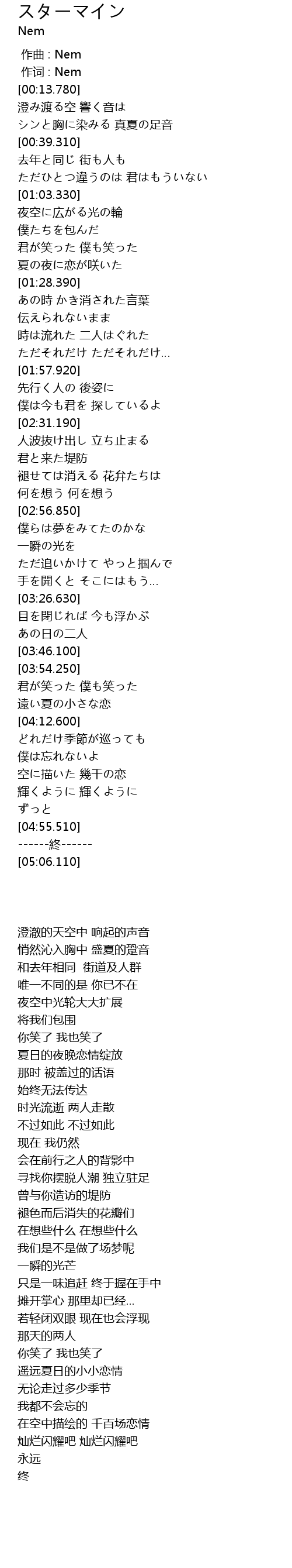 | [04:06.530] | 遥远夏日的小小恋情 |