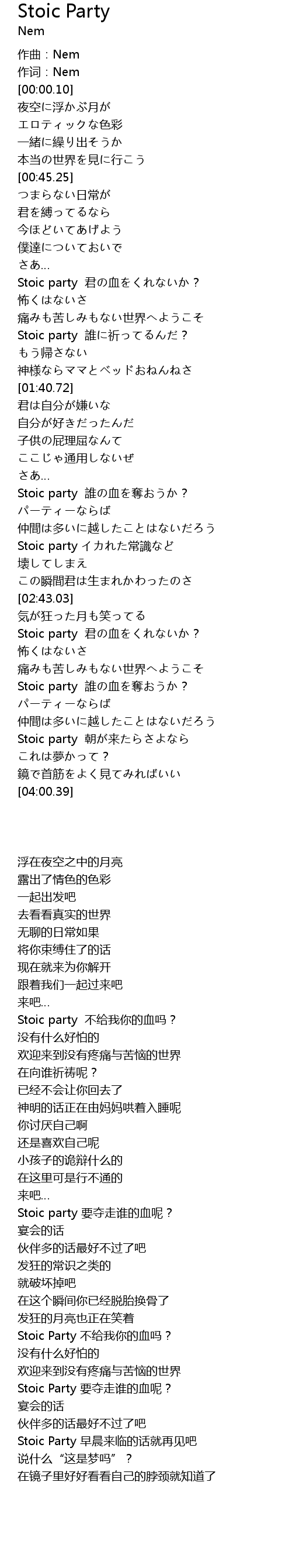 | [03:11.97] | Stoic Party 不给我你的血吗? |