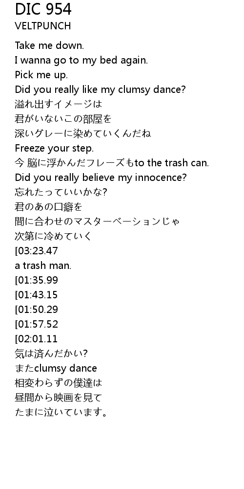 | [01:04.03] | 今 脳に浮かんだフレーズもto the trash can. |
