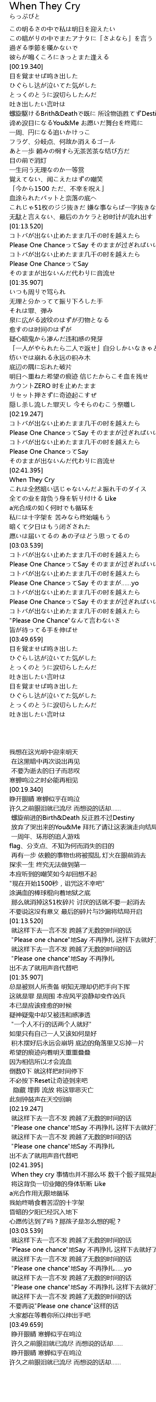 | [02:41.835] | When They Cry これは全然暗い话じゃないんだよ振れ千のダイス |