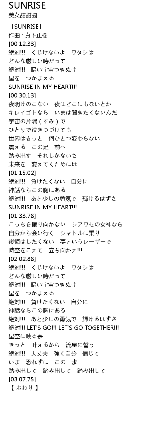 | [01:30.20] | SUNRISE IN MY HEART!!! |