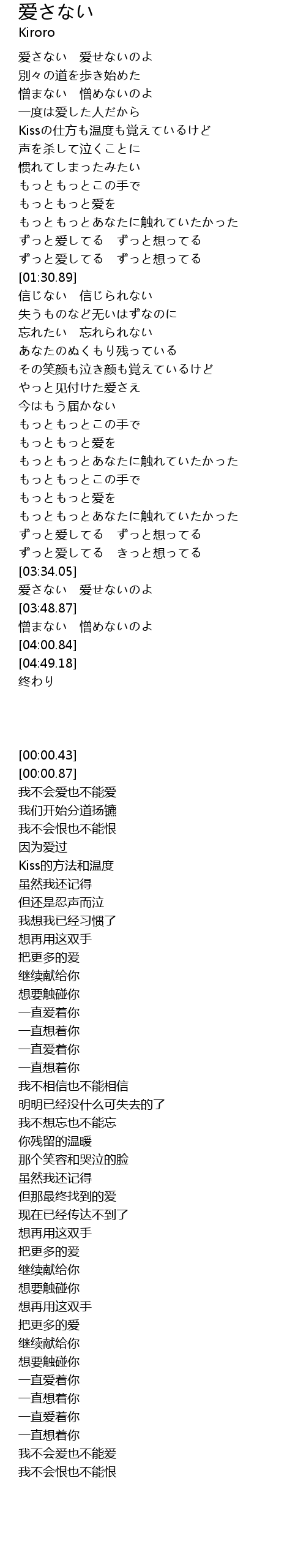 爱さない 爱せないのよ |