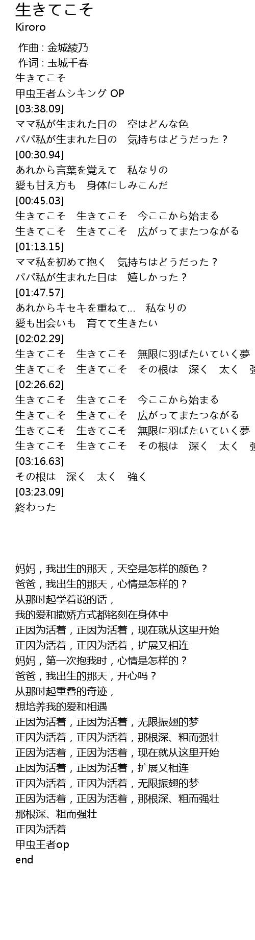 | [00:48.78] | 生きてこそ 生きてこそ 今ここから始まる |