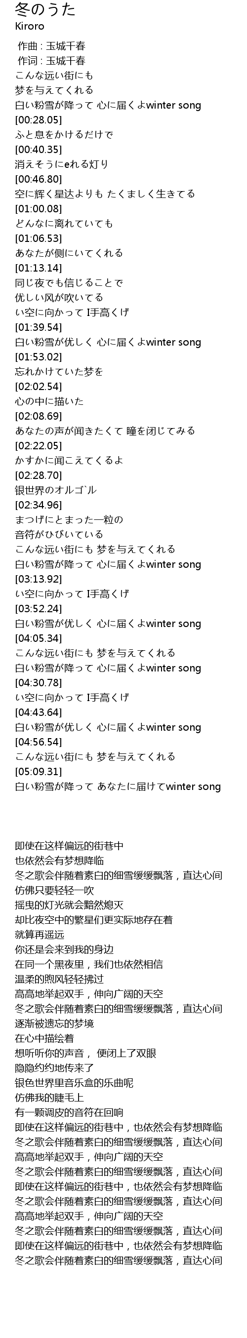| [04:44.24] | 白い粉雪が优しく 心に届くよwinter song |