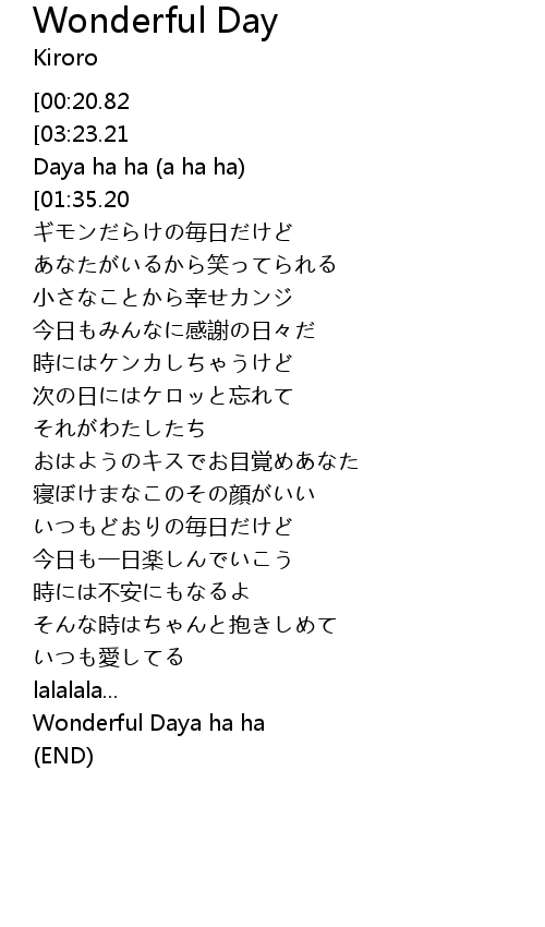 | [02:47.96][01:35.20][00:37.32] | Wonderful Day a ha ha (a ha ha) |