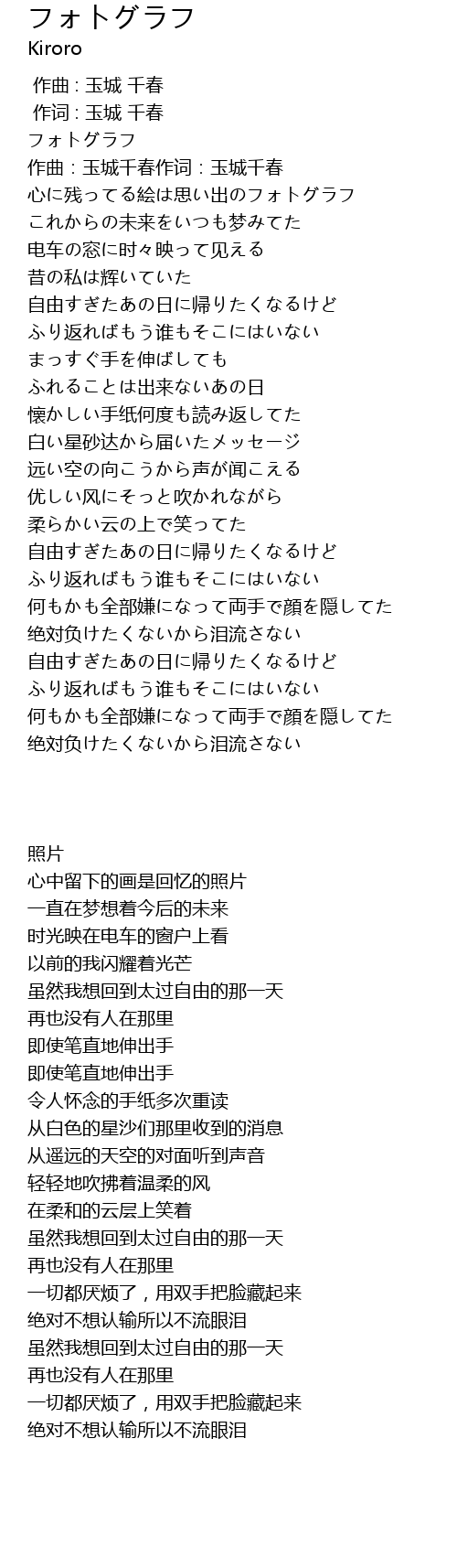 | [00:12.04] | 心に残ってる絵は思い出のフォトグラフ |