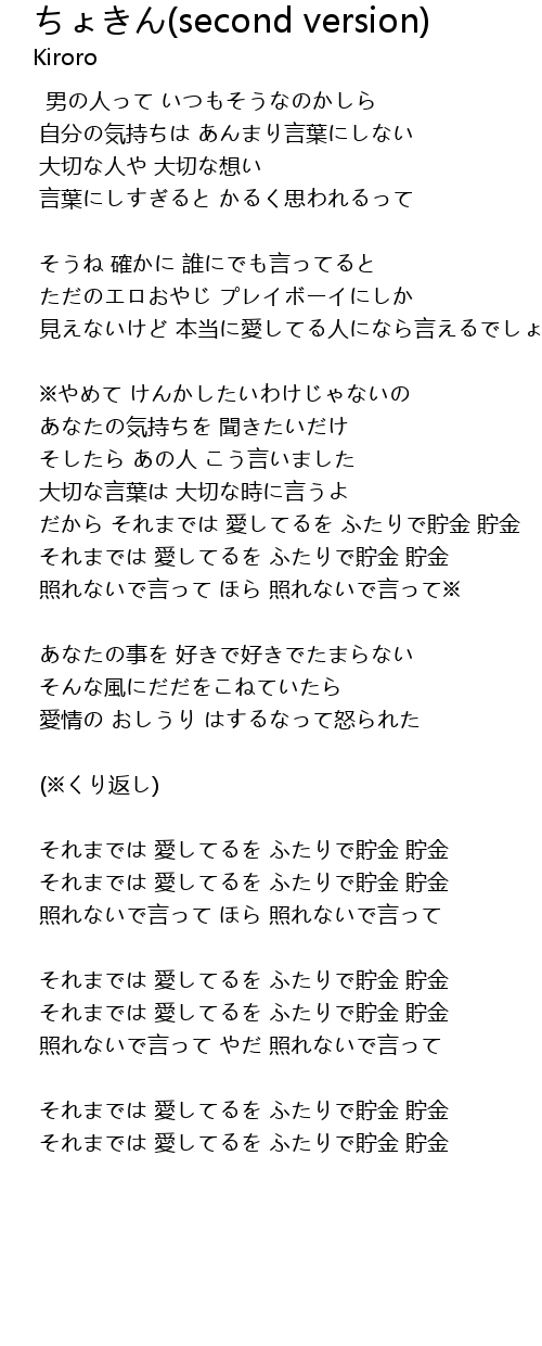 | だから それまでは 愛してるを ふたりで貯金 貯金 | |