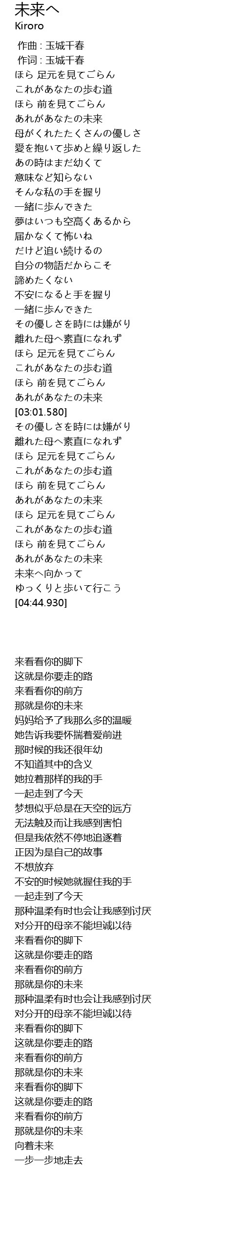 | [00:39.270] | 母がくれたたくさんの優しさ |