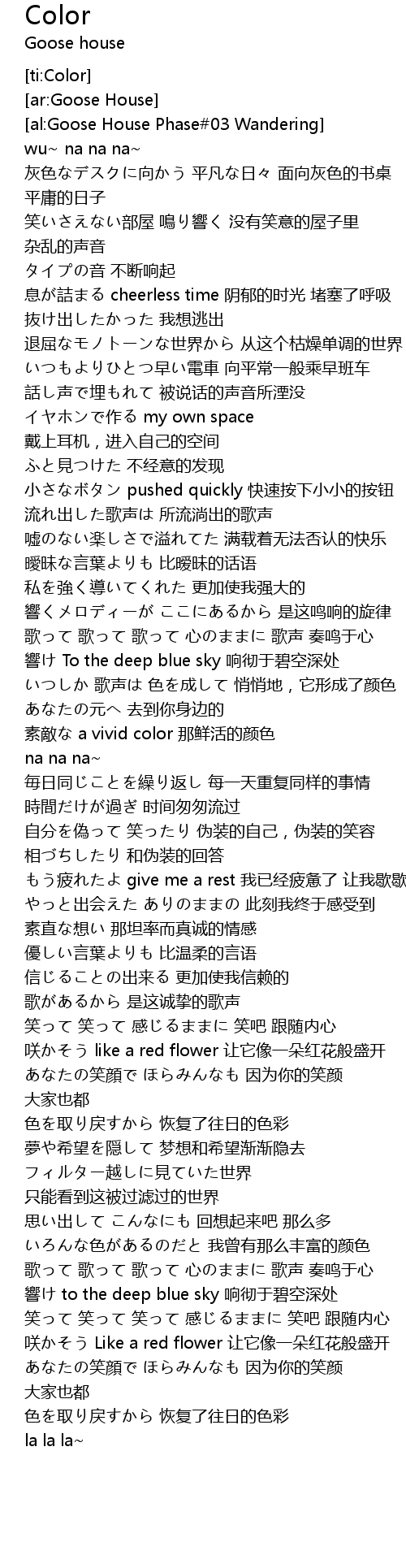 | [03:38.48] | 咲かそう Like a red flower 让它像一朵红花般盛开 |