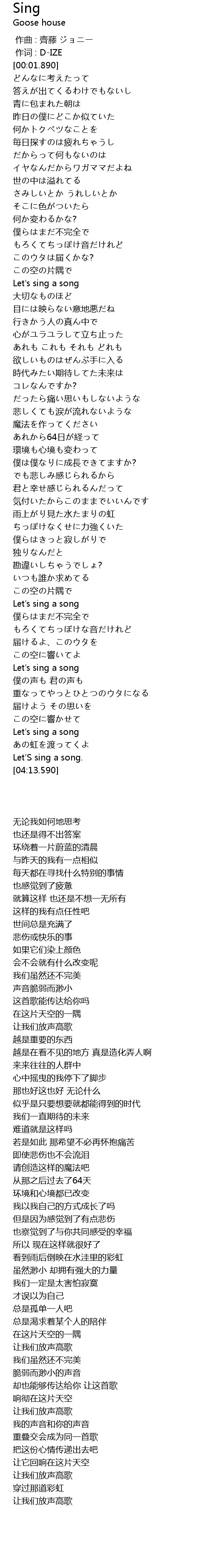 | [04:05.190] | Let's sing a song |