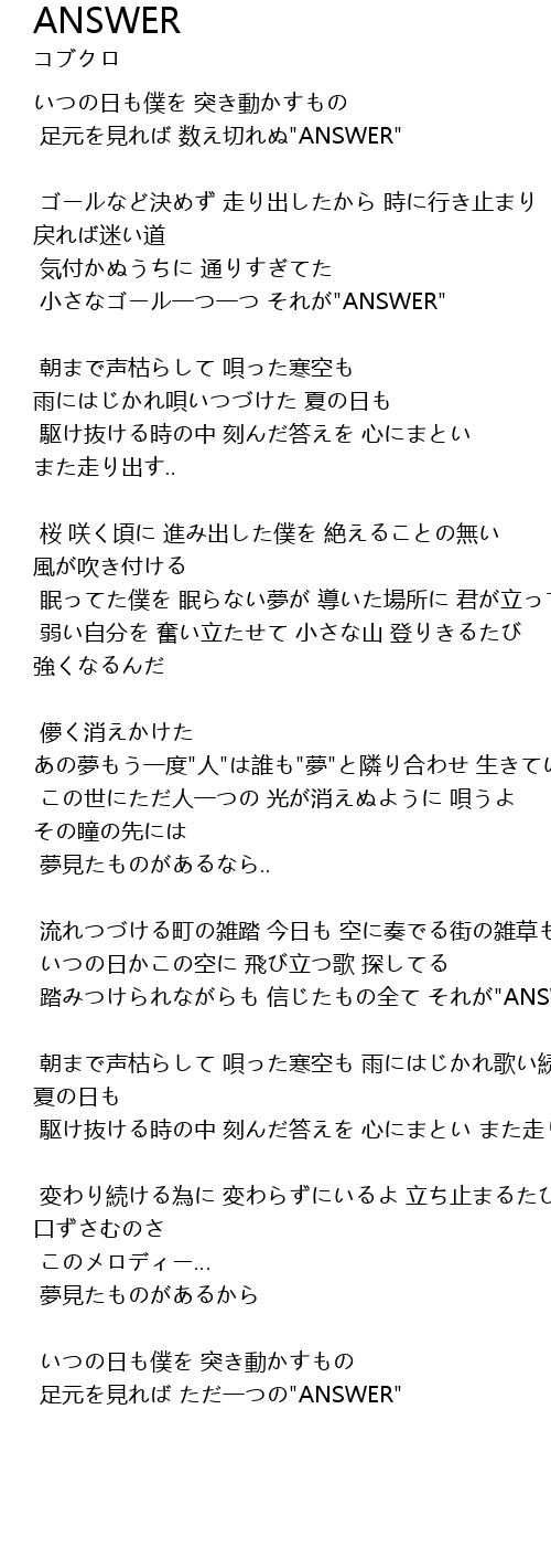 | 踏みつけられながらも 信じたもの全て それが"ANSWER" | |