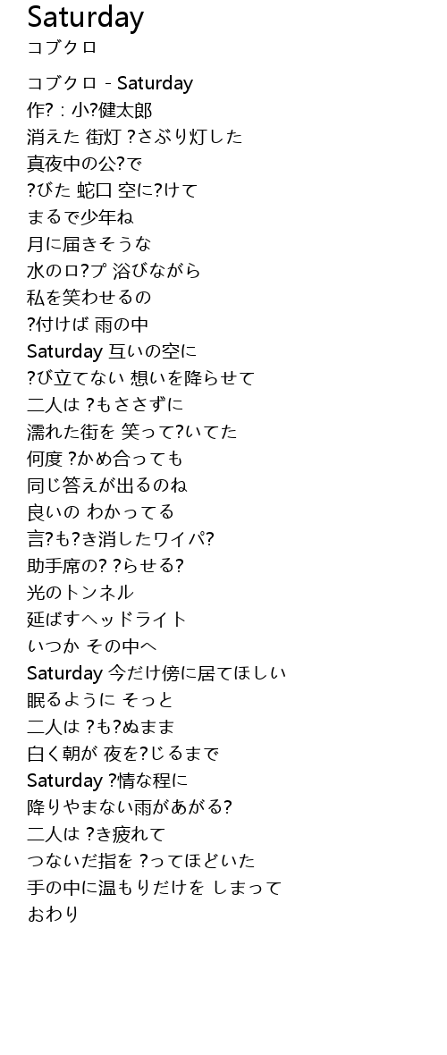 | [00:00.00] | コブクロ - Saturday |