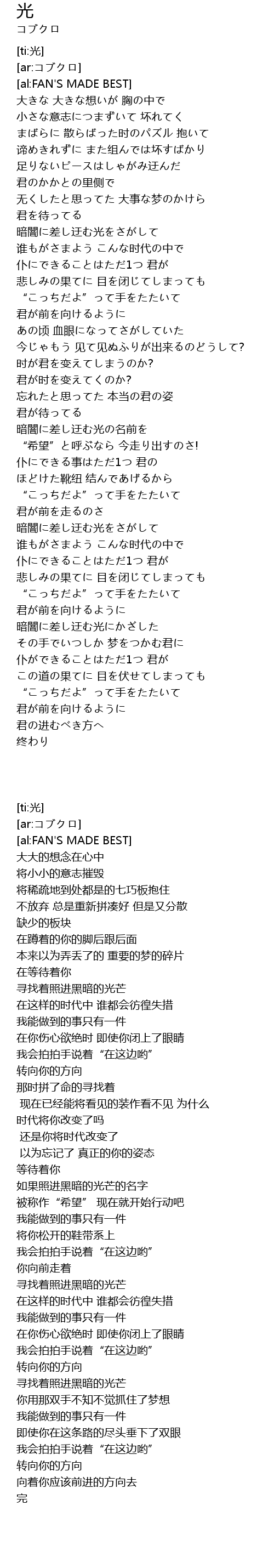 | [00:50.29] | 本来以为弄丢了的 重要的梦的碎片 |
