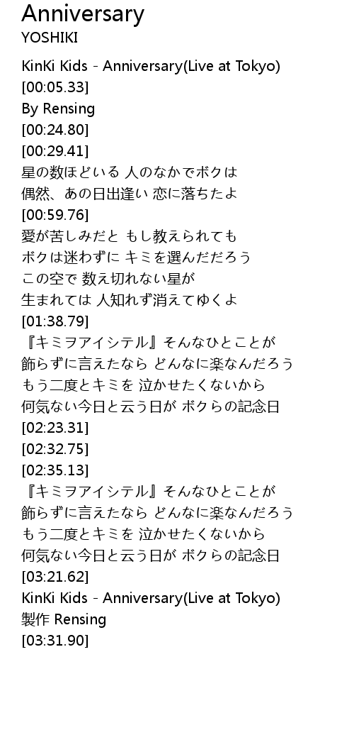 | [03:24.96] | KinKi Kids - Anniversary(Live at Tokyo) |
