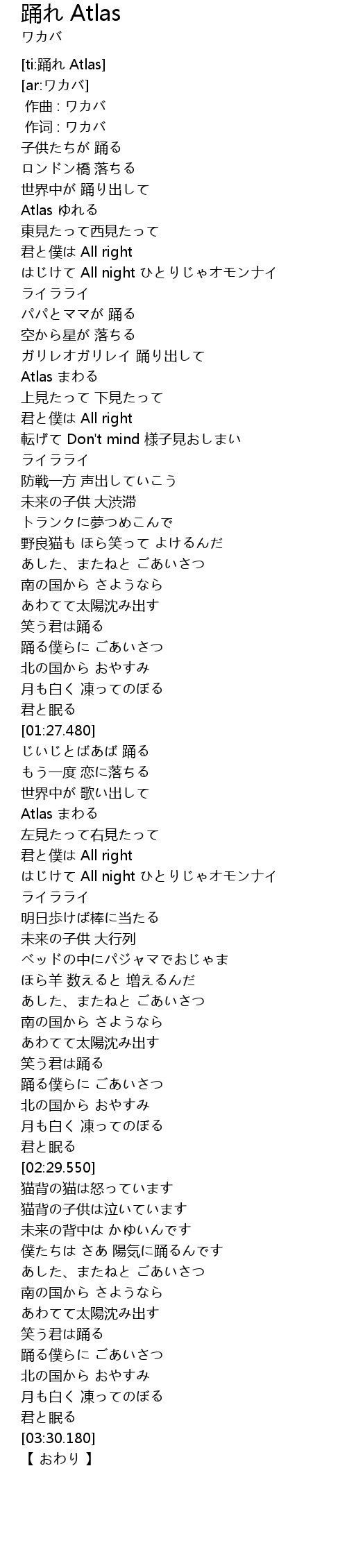 | [02:17.790] | 踊る僕らに ごあいさつ |