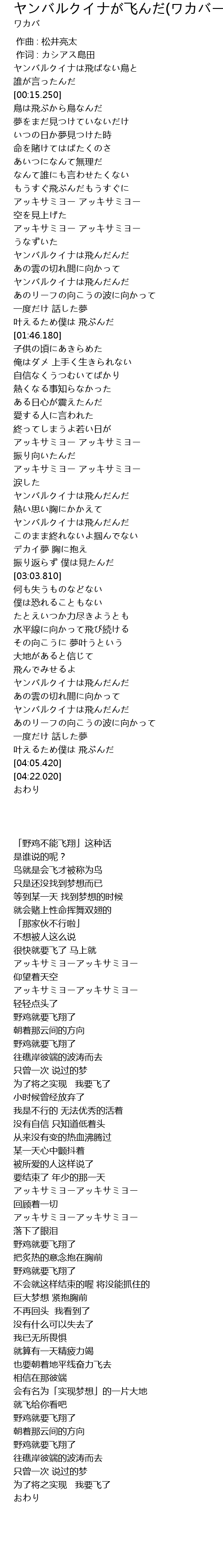 | [02:43.450] | ヤンバルクイナは飛んだんだ |