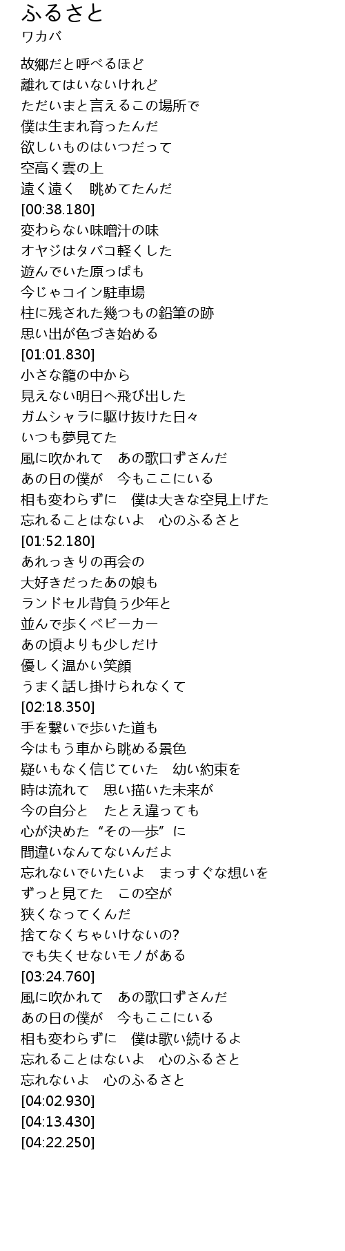 | [03:52.960] | 忘れないよ 心のふるさと |