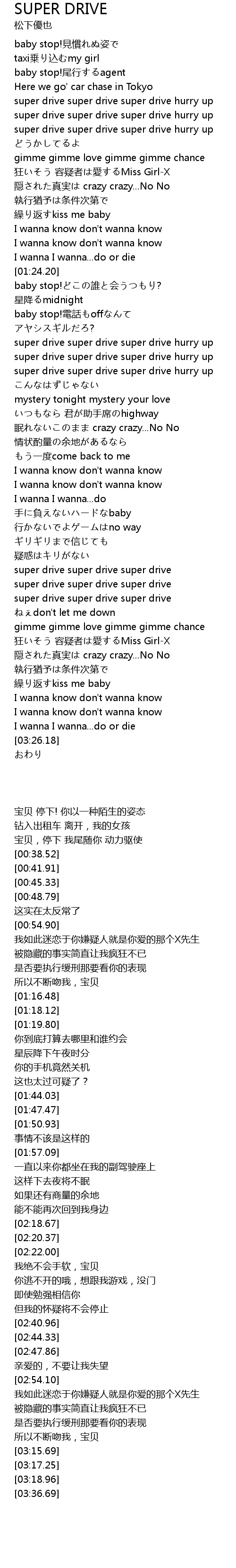| [01:50.93] | super drive super drive super drive hurry up |