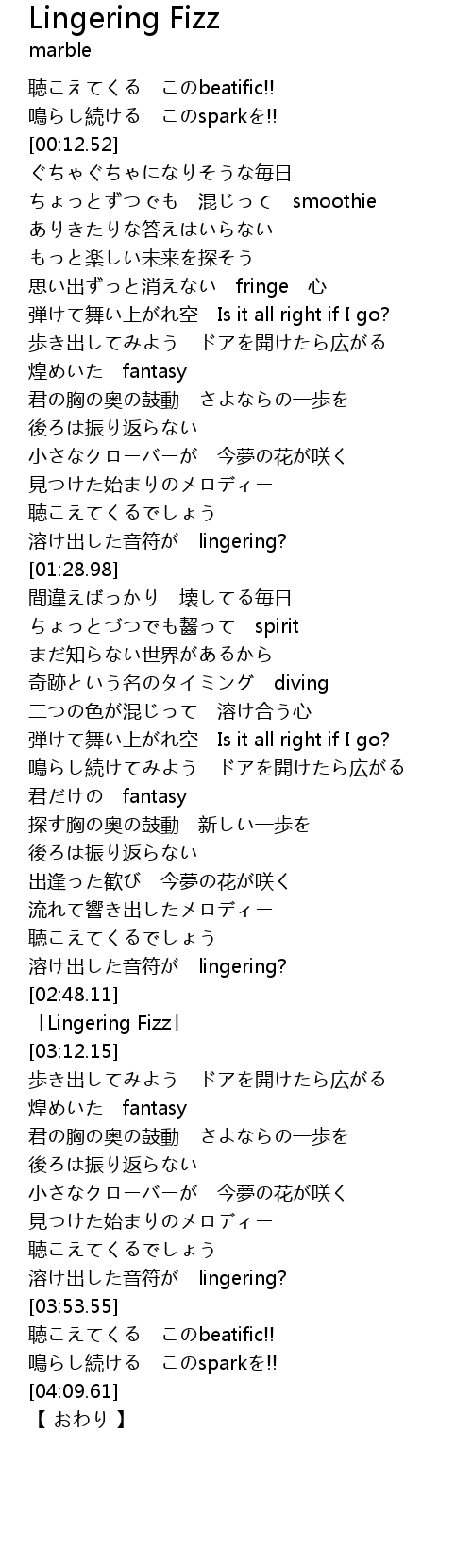 | [02:51.15] | Lingering Fizz |