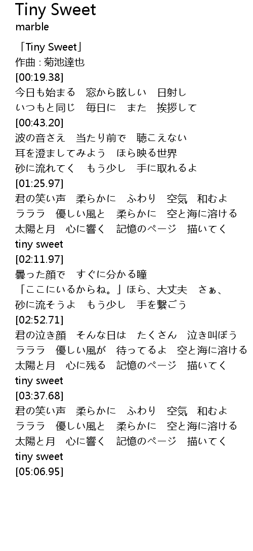 | [03:03.91] | ラララ 優しい風が 待ってるよ 空と海に溶ける |