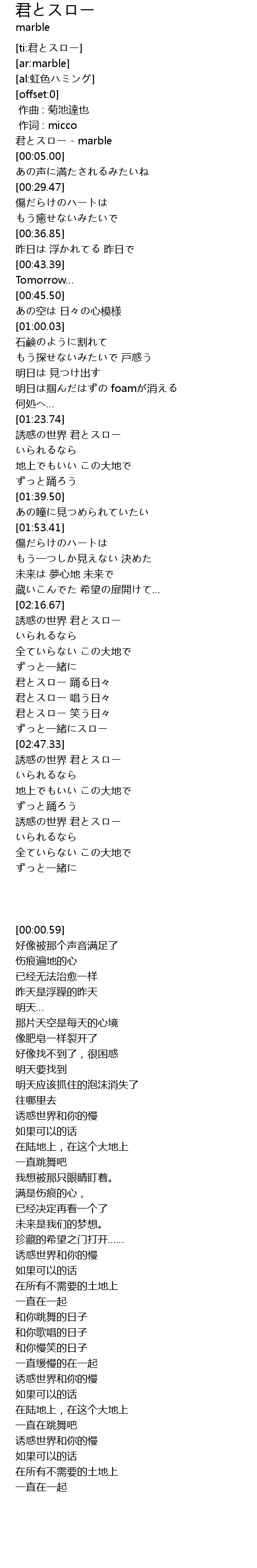 | [00:00.59] | 君とスロー - marble |