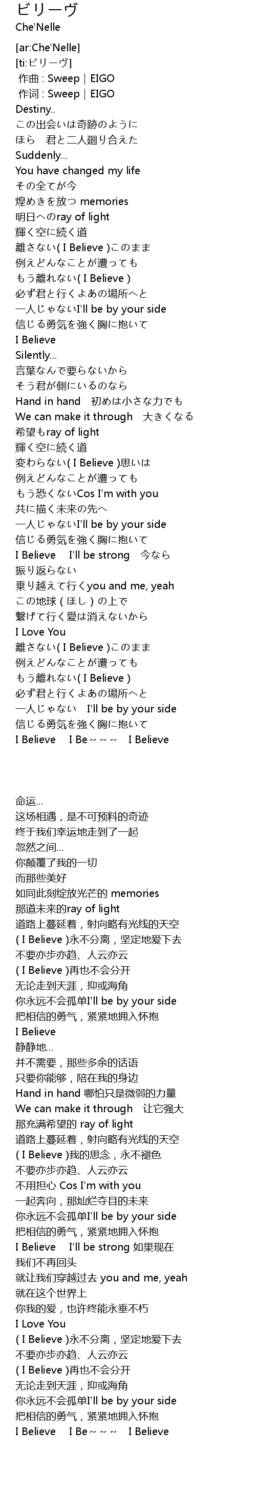 | [04:09.42] | I Believe I Be~~~ I Believe |