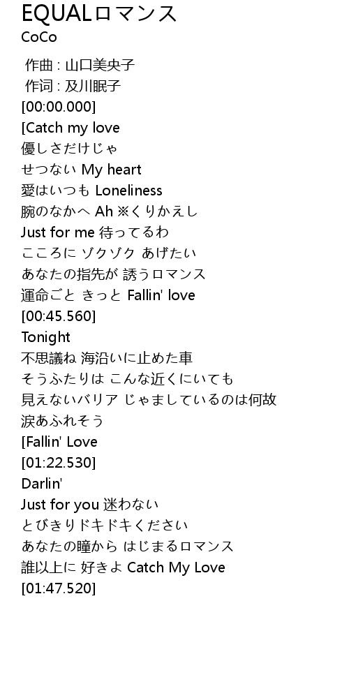 | [01:41.120] | 誰以上に 好きよ Catch My Love |