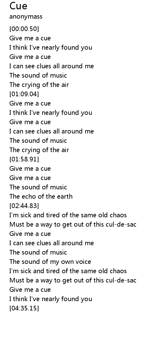 | [00:41.45] | Give me a cue |