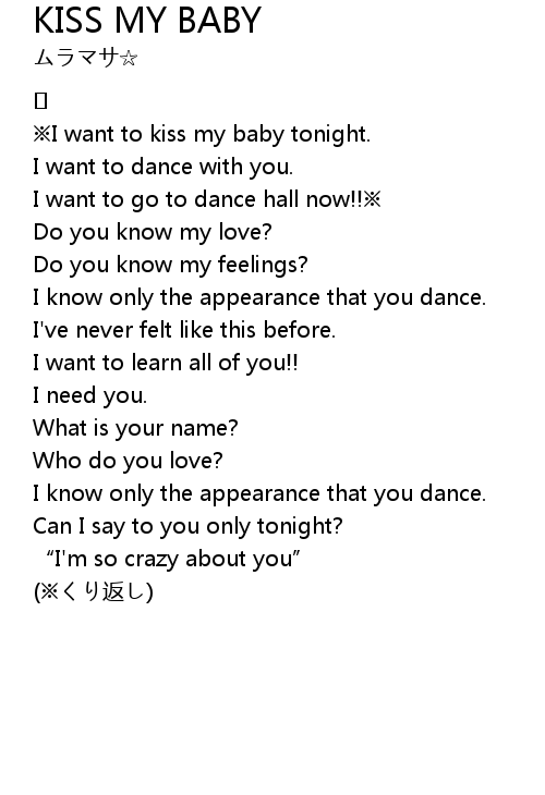 | ※I want to kiss my baby tonight. | |