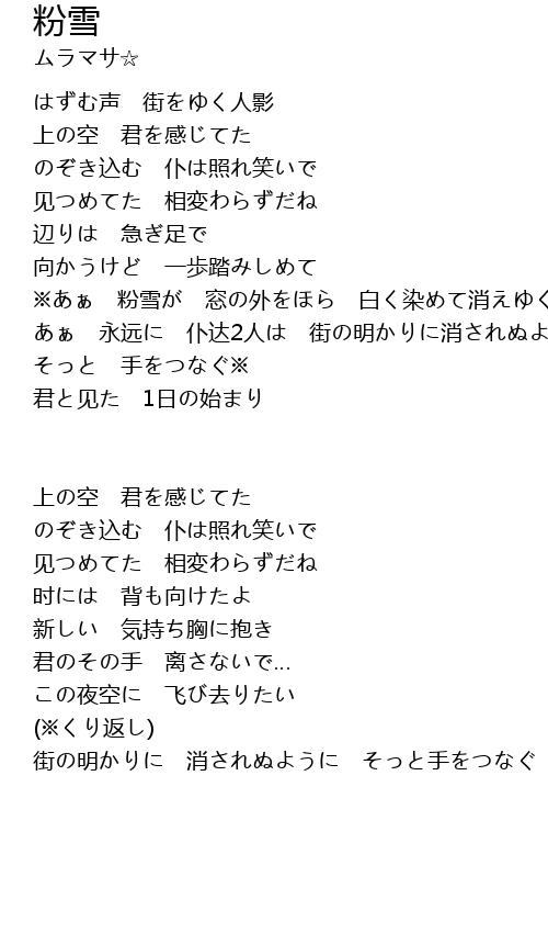 | ※あぁ 粉雪が 窓の外をほら 白く染めて消えゆく定めならば | |