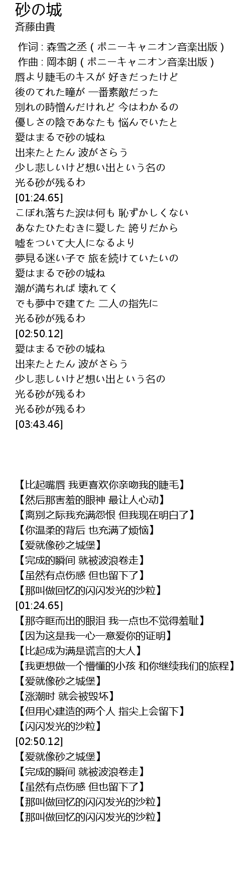 | [03:15.85] | 【完成的瞬间 就被波浪卷走】 |